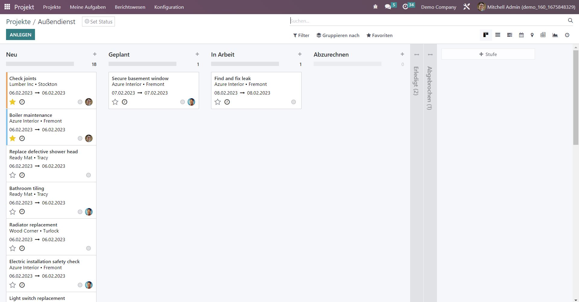 Die agile Projektmanagement-App von Odoo bietet eine umfassende Übersicht über deine Mitarbeiter, Projekte und Verfügbarkeiten. Die Kanban-Ansicht ermöglicht es, Aufgaben zu erstellen, Dokumente hochzuladen und diese an die jeweiligen Projektteilnehmer zu verteilen. So hast du jederzeit den Überblick und kannst Projekte erfolgreich umsetzen.