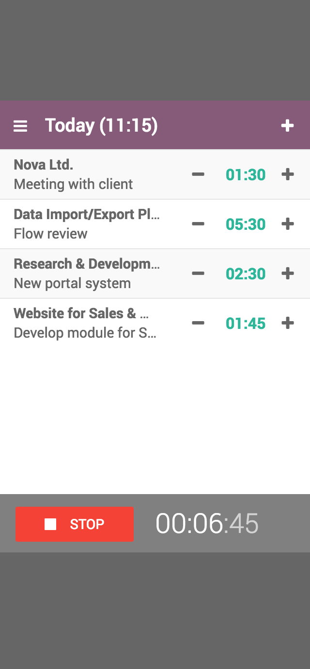 Mit der mobilen Zeiterfassungs-App kannst du deine Dienstleistungszeit erfassen. Du kannst diese Zeit automatisch deinen Kunden in Rechnung stellen oder nutzen, um die verfügbaren Zeiten deiner Mitarbeiter zu prognostizieren.